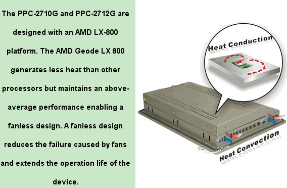 AMD® Geode LX800 Fanless Panel PC with 10.4" / 12" TFT LCD and Touch Screen |