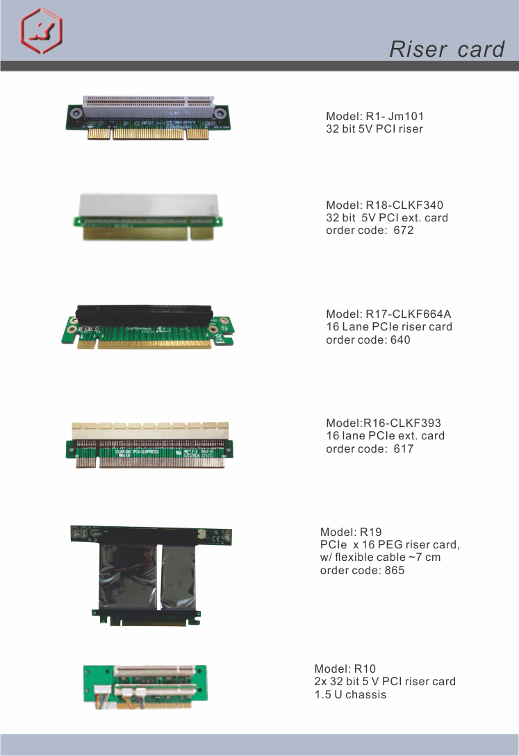 R19, order code: 865, PCIe x 16 PEG riser card, w/ flexible cable ~7 cm |