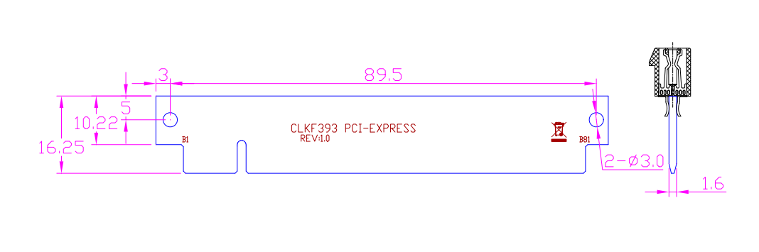 R16 - CLKF 393, order code:617, PCIe x16 Lanes , Dimension